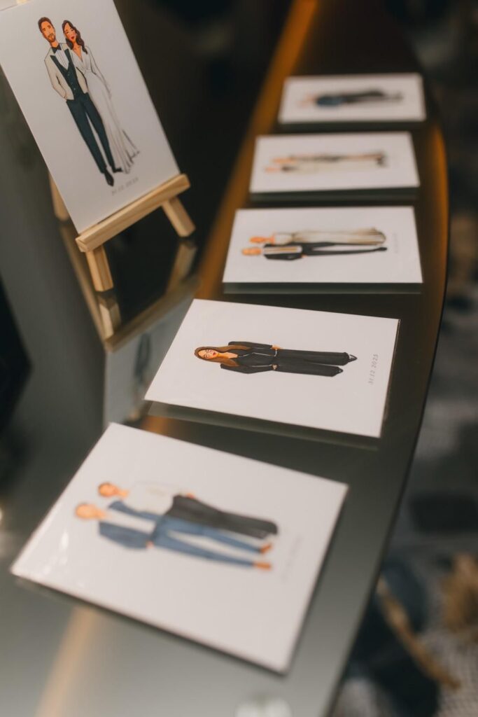 Invitatii sunt desenati rapid , in stil fashion sketch si isi pot lua desenul acasa pe loc, ca o amintire personala , creata chiar in acel moment.